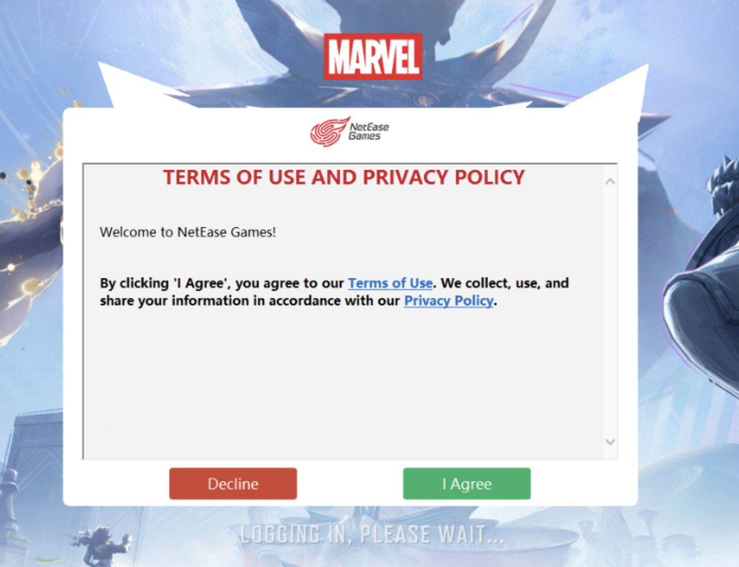 You will see the Terms of Use and Privacy Policy window (as shown below).